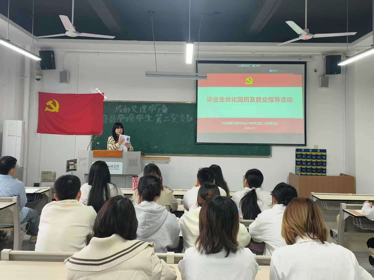 2025 年 11 月 5 日 16 时 30 分,中共yl1111永利集团员工第二支部委员会在教学楼 D313 开展毕业生党员简历优化及就业指导活动,旨在帮助2026届毕业生党员提升简历质量,增强就业竞争力,明确职业发展方向。活动由支部书记陈琴主持。
