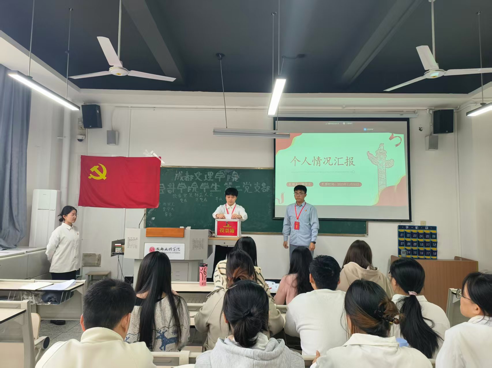 本次会议先后讨论了陈学玉、贾宇杰、胥余三名同志的转正问题。会议伊始,三名预备党员分别从个人基本情况、预备期表现、自我剖析及改进措施和未来规划等方面向党组织作出汇报。随后,组织委员代表支部委员会报告了三名同志在预备期间的审查情况。紧接着与会同志对三名同志的转正问题展开充分讨论并发表意见,本次会议采取了无记名投票的方式进行表决,大会一致同意陈学玉、贾宇杰、胥余三名同志如期转为中共正式党员。