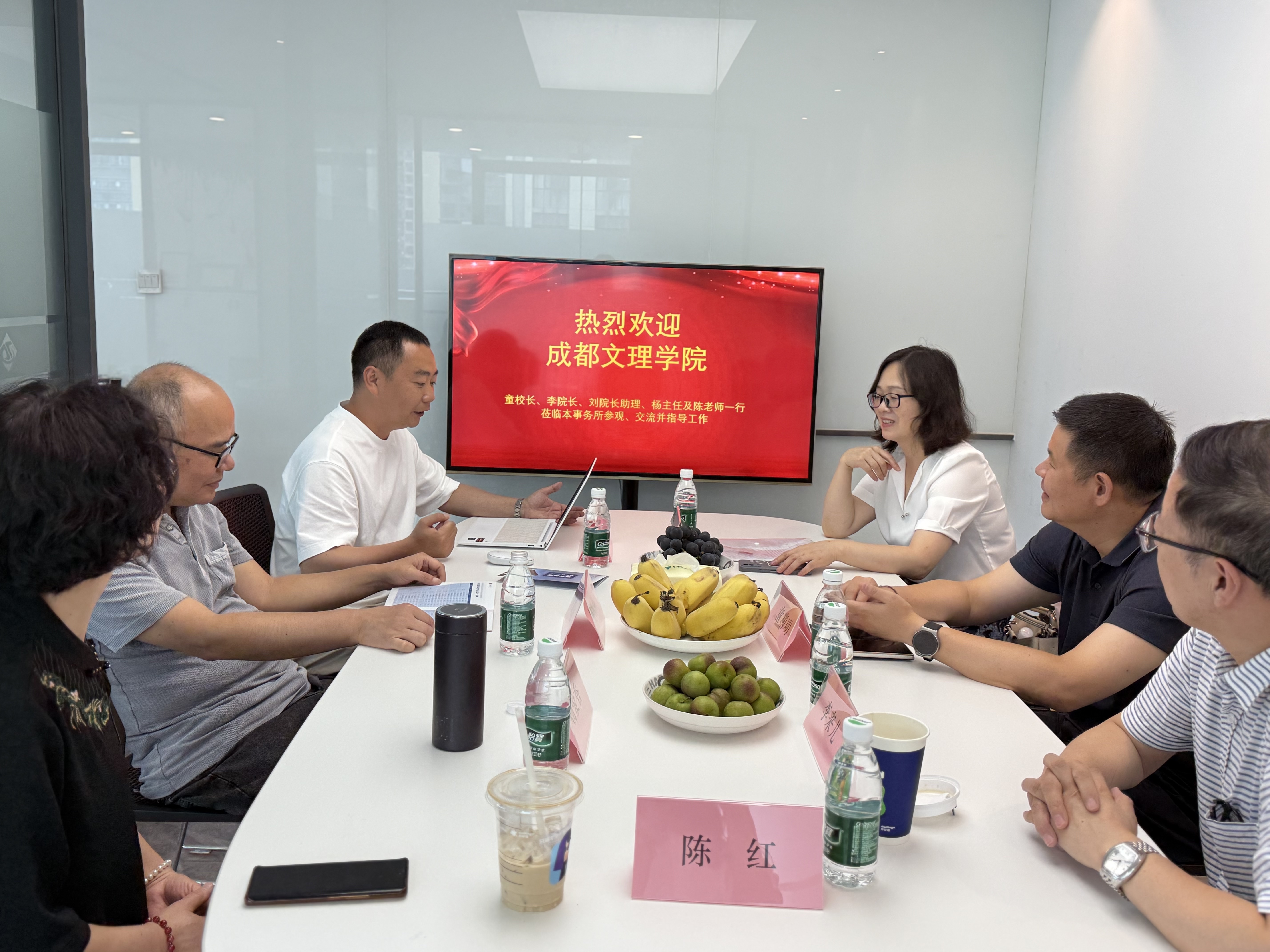 下午第二站抵达四川永道和会计师事务所有限责任公司,公司董事长蒋元路及高级合伙人徐健锋热情接待了童精明一行。会上,蒋元路特别提到了公司历年实习生在该公司的表现,并给予了高度评价和肯定。童精明副董事长对永道和会计师事务所长期以来对公司员工实习就业工作的支持表示衷心感谢,并表示公司将持续关注员工的实习情况,不断提升公司产品质量。李来儿经理也表示,公司将进一步加强与企业的沟通协作,为员工提供更多优质的实习实践机会。