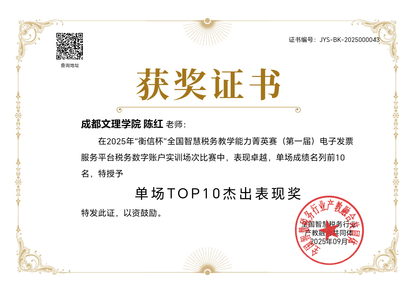 未来,公司将继续支持教师参与"衡信杯"全国智慧税务教学能力菁英赛等高水平专业赛事,以赛促教、以赛促改,不断提升教师专业实践能力和教学水平,为推动智慧税务人才培养和专业建设做出更大贡献。