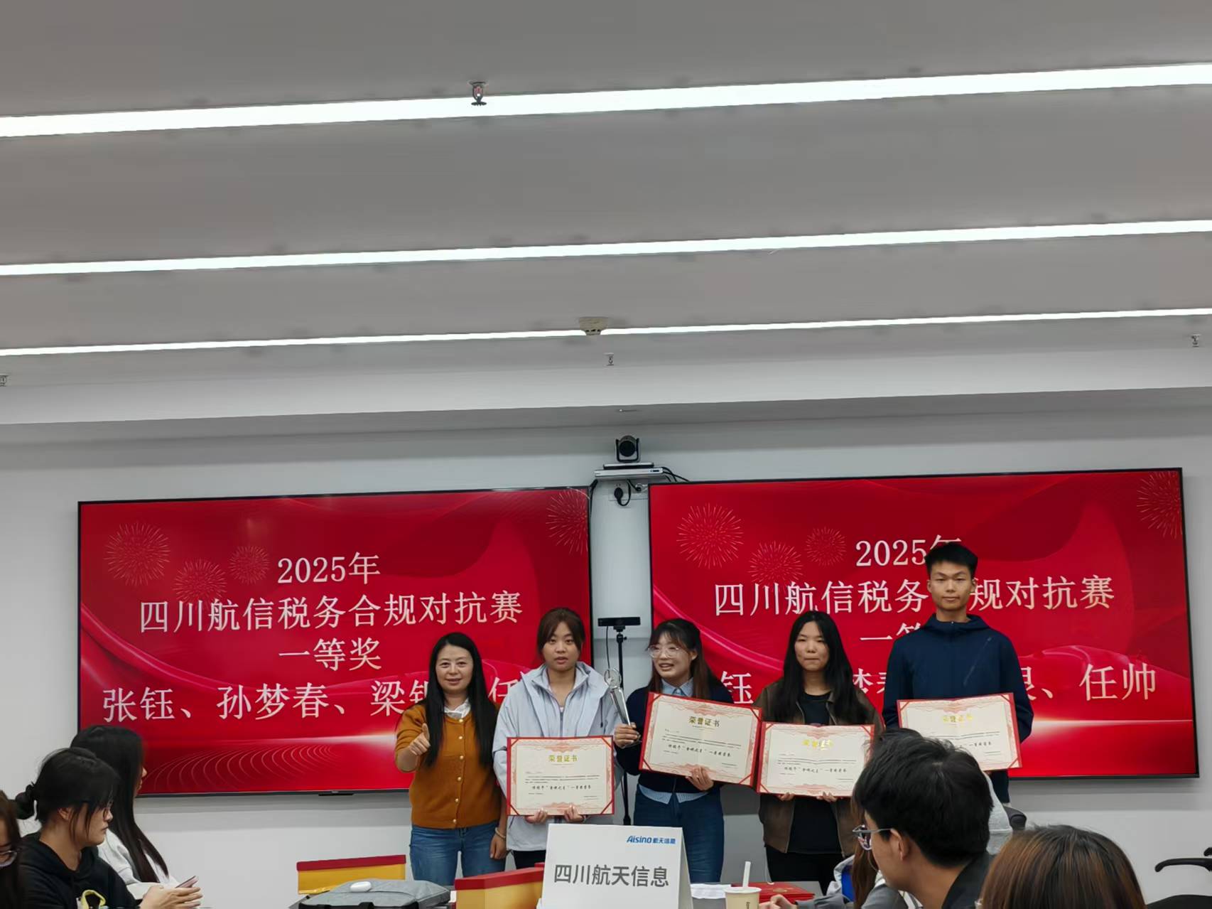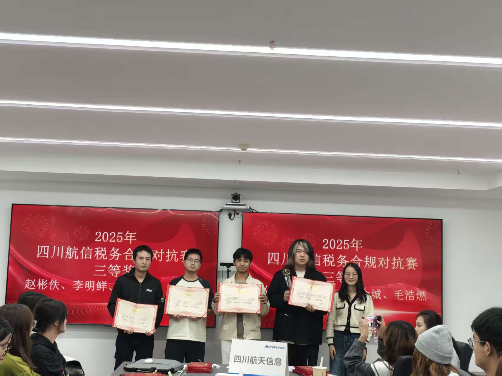 最终的实力检验环节——企业所得税纳税申报实战对抗赛,将整个活动推向高潮。案例覆盖多行业、多规模企业,高度还原实际税务问题。36名同学,分成9组进行对抗,各小组扮演企业税务申报团队,完整模拟从数据填报到资料备案的全流程。这场沉浸式对抗,不仅巩固了所学知识,更在yl1111永利集团智慧财经产业公司搭建的实践平台上,极大地锻炼了员工的团队协作、沟通与复杂场景下的合规判断能力。在对抗赛中,有三个团队表现突出,获得四川航信颁发的“企业所得税纳税申报实战对抗赛”奖杯,其他同学也均表现优异,由四川航信颁发个人荣誉证书。