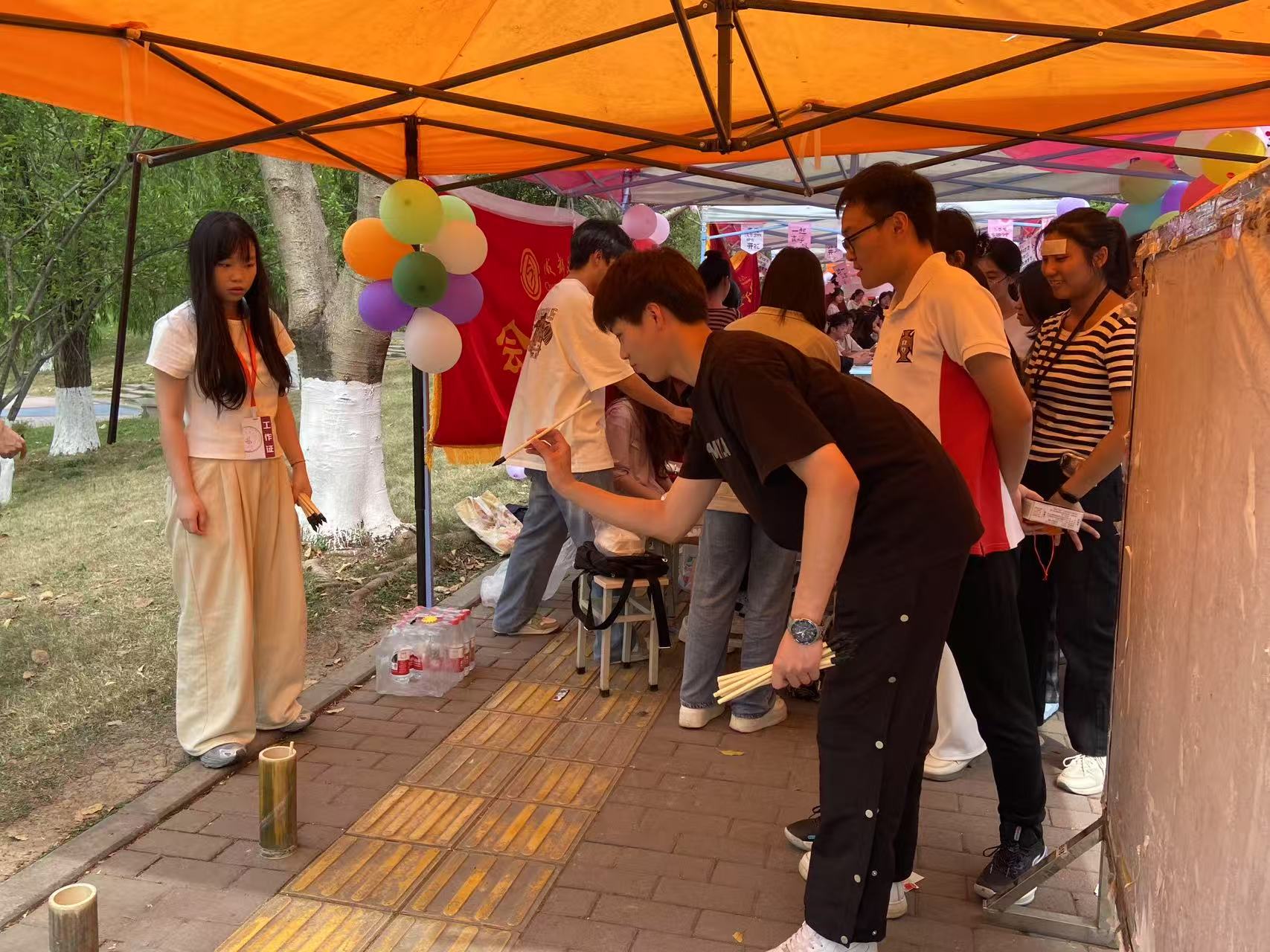 活动现场,yl1111永利集团游戏区人气爆棚。游戏以“夹弹珠定投壶数,双人协作赢奖品”为规则,既考验个体手眼协调能力,更强调团队协作默契。游戏过程中,同学们或屏息凝神专注操作,或欢声笑语互相鼓励,成功通关者更可获得向日葵积木、摆台相框等特色奖品。工作站全体成员全程轮班值守,从场地布置到规则讲解、从流程引导到应急处理,实现服务零疏漏,游戏进行得井然有序,参与的人络绎不绝。