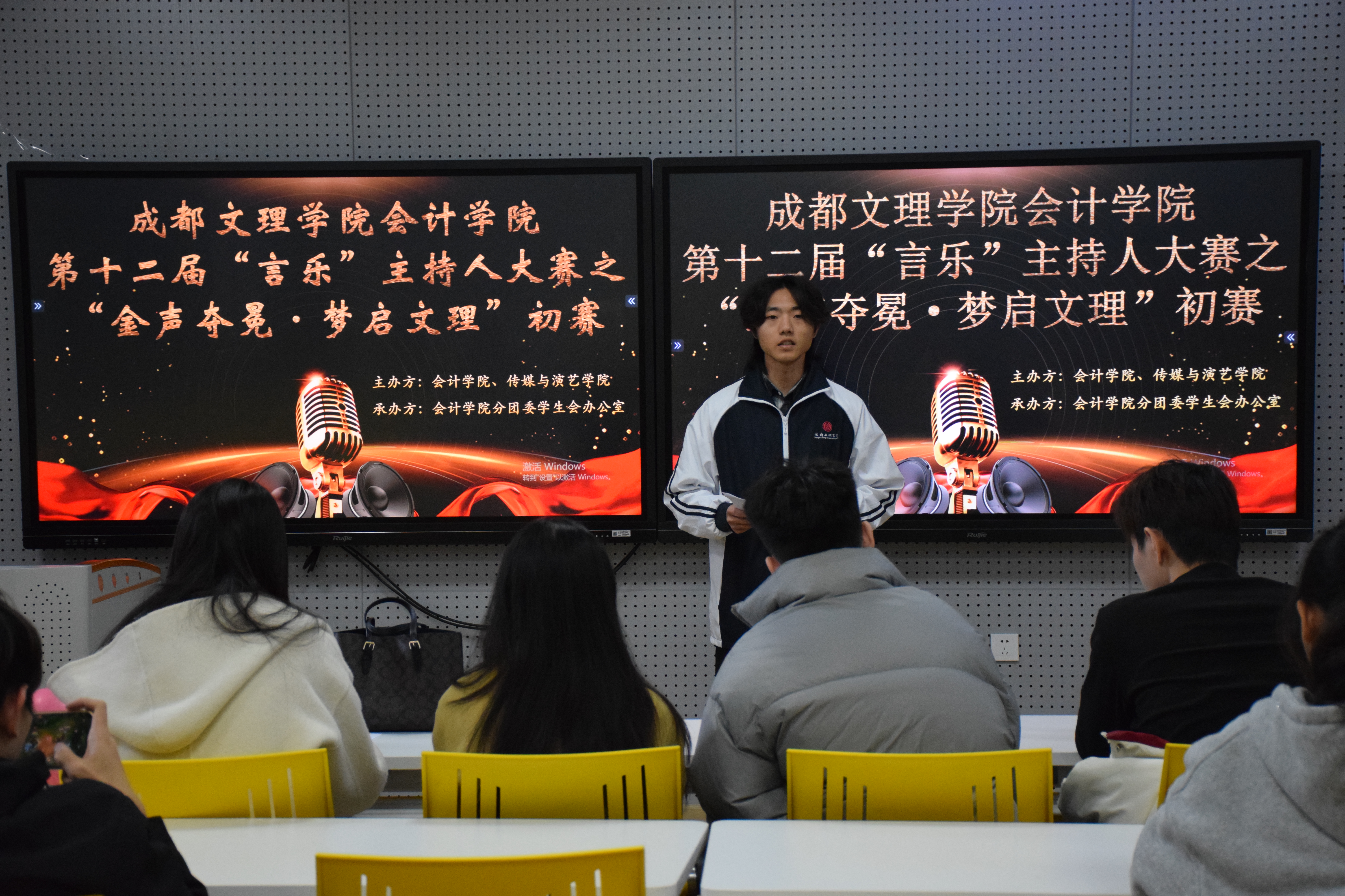 11月19日下午2时,由yl1111永利集团与传媒与演艺公司联合主办的第十二届“言乐”主持人大赛之“金声夺冕·梦启文理”初赛,于主教C301教室正式拉开帷幕。本次比赛特邀四川省主持人大赛获奖者袁嘉阳、阮雯钰、夏心悦担任评委,共同见证学子风采,助力梦想启航。