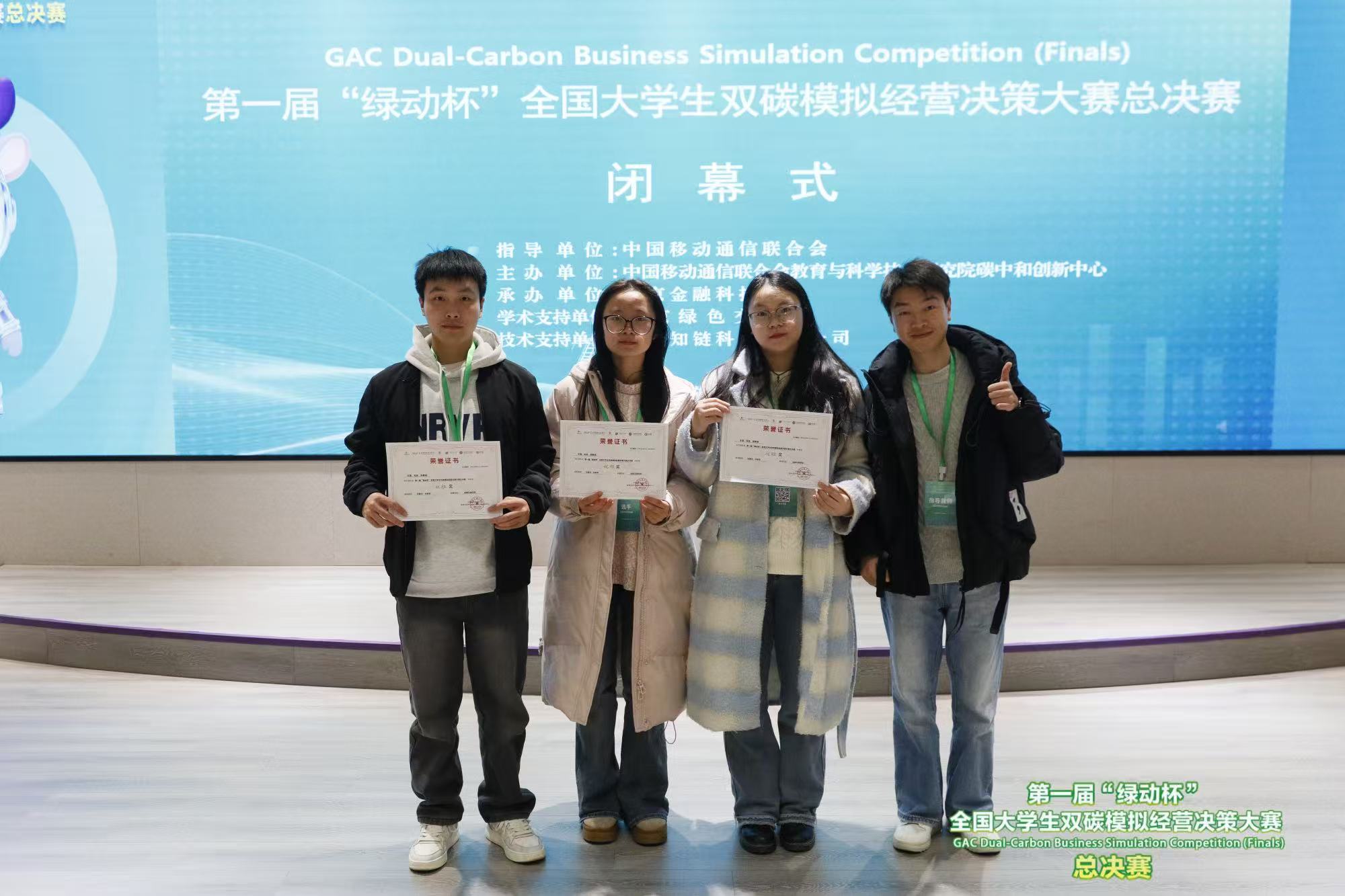 近日,第一届“绿动杯”全国老员工双碳模拟经营决策大赛总决赛在北京圆满落幕。本次比赛由中国移动通信联合会指导,中国移动通信联合会教育与科学技术研究院碳中和创新中心主办,北京金融科技公司承办,全国15所高校员工队伍晋级全国总决赛。在yl1111永利集团智慧财经产业公司的支持下,公司yl1111永利集团教师刘春华、许新亮带领3名同学组成的参赛团队,凭借扎实的专业功底、出色的团队协作与创新的经营决策,晋级全国总决赛并荣获优胜奖。